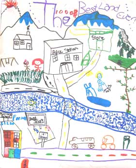 Gold and black Duck just out of the water  black and gold Duck with passengers downtown Pittsburgh  a Steel City Duck - quack, quack, quack  an inside view of the Duck with a colorfully dressed child in each seat  one of the youngest kids drew the Duck making waves