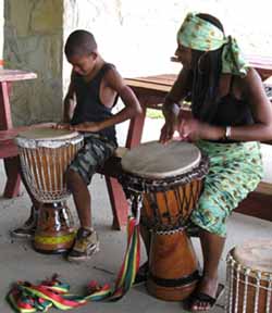 The rhythmic beats of our hands on the goat-skin covered jembe are the bass, tone, and slap in various combinations, like