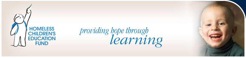 The Homeless Children's Education Fund is a registered 501(c)(3) not-for-profit organization with United Way Donor Option #963315.